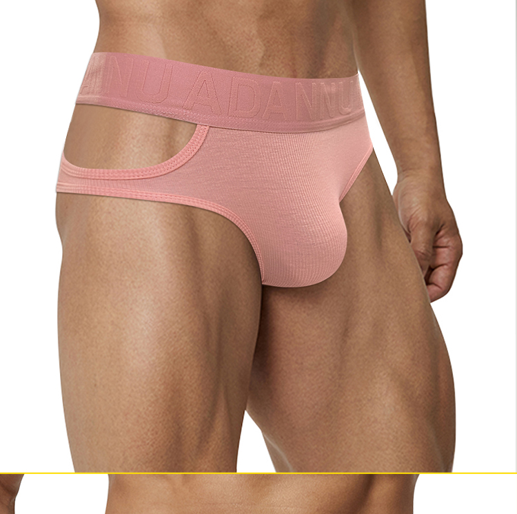 The men\'s sexy triangular inner side with a hollowed-out U-shaped protrusion is very tempting. Solid color, low waist, sports cotton material, comfortable and breathable, lifting the buttocks