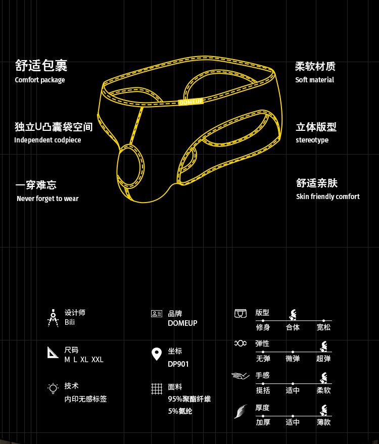 男士低腰三角内裤 纯色薄款 + 镂空 U 凸 透气性感翘臀款